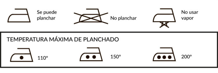Si aparece una plancha tachada, significa que no se debe planchar. Esto es habitual en tejidos sintéticos o delicados.